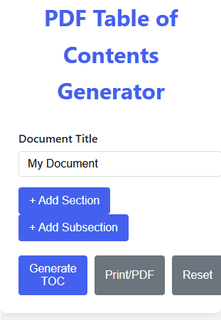 Need a fast, easy way to organize your PDF files? Use our PDF Table of Contents Generator to auto-generate a clickable, structured Table of Contents for any PDF document. Perfect for eBooks, reports, manuals, and presentations, this tool lets you add navigable headings, improving both document structure and user experience.